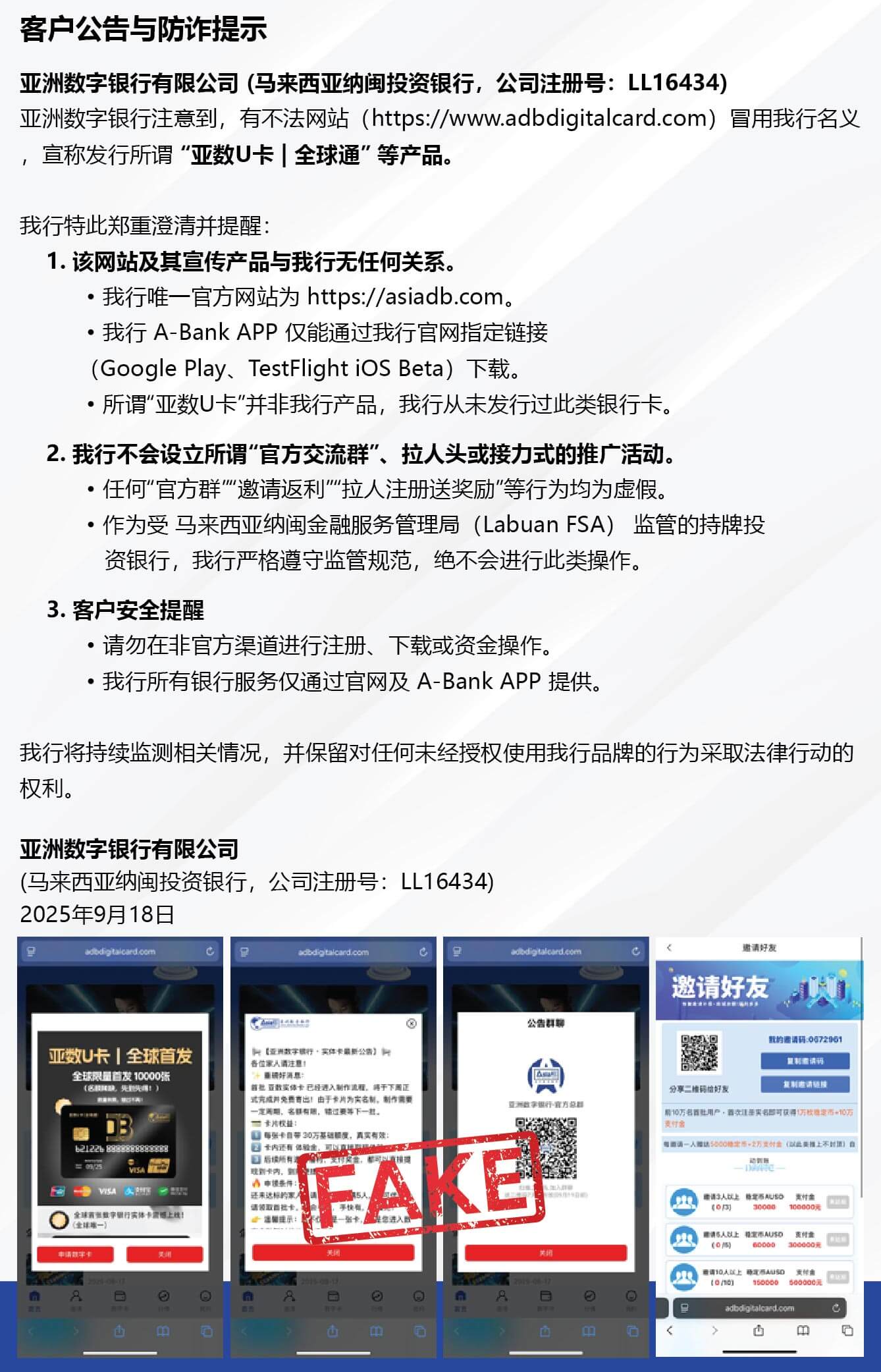 亚洲数字银行有限公司(注册号:LL16434)于2019年11月获马来西亚纳闽金融服务管理局批准设立,并于2020年11月取得《纳闽投资银行业务牌照》(Licence No.: 200134BI)。作为持牌投资银行,亚洲数字银行专注于投资银行、财富管理及资产管理业务,并被纳闽金融服务管理局列入 数字金融服务提供者(DFSP)名单。